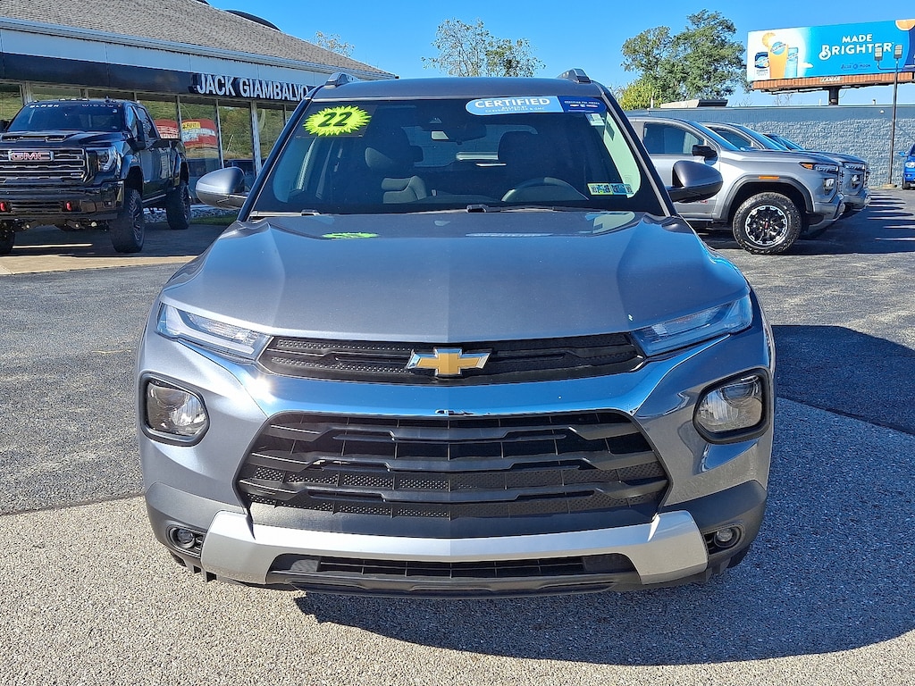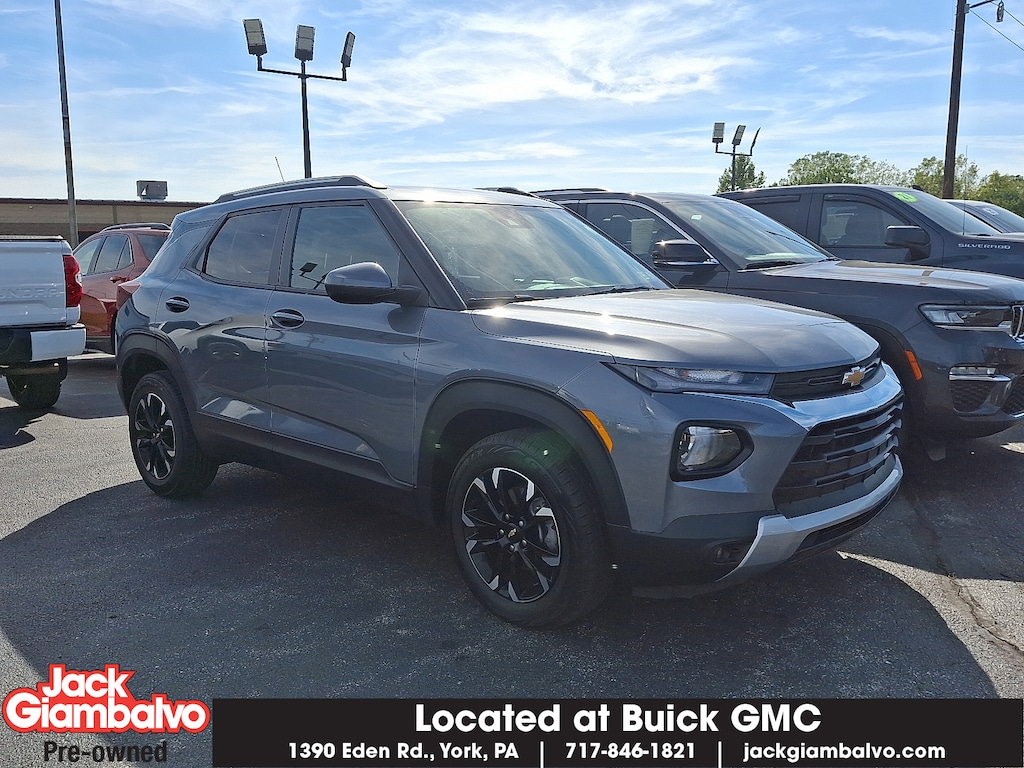Certified. Satin Steel Metallic 2022 Chevrolet TrailBlazer LT AWD 9-Speed Automatic 1.3L Ecotec Turbo DOHC SIDI w/VVT GM CERTIFIED! ONE OWNER! CLEAN AUTOCHECK USB / AUX INPUTS TO PLAY MUSIC! BLUETOOTH HANDS-FREE! BACK UP CAMERA! PREMIUM WHEELS!.Recent Arrival! 26/30 City/Highway MPGChevrolet Certified Pre-Owned Details: * Roadside Assistance * Vehicle History * Transferable Warranty * 172 Point Inspection * Warranty Deductible: $0 * Limited Warranty: 12 Month/12000 Mile (whichever comes first) from certified purchase date * Powertrain Limited Warranty: 72 Month/100000 Mile (whichever comes first) from original in-service date * 24 months/24000 miles (whichever comes first) Certified Pre-Owned Scheduled Maintenance Plan and 3 days/150 miles (whichever comes first) Vehicle Exchange Program. SiriusXM 3-month trial subscription.Awards: * 2022 IIHS Top Safety Pick+With a wide array of different used and certified pre-owned vehicles to choose from Jack Giambalvo is the best York used car dealer in the area. For years we have been a favorite Harrisburg Lancaster and Hanover PA GMC & Buick used car source; so stop by or contact us today and experience the Jack Giambalvo Buick GMC difference.Your York GMC and Buick dealership is just minutes from Lancaster Shrewsbury New Freedom and Baltimore!