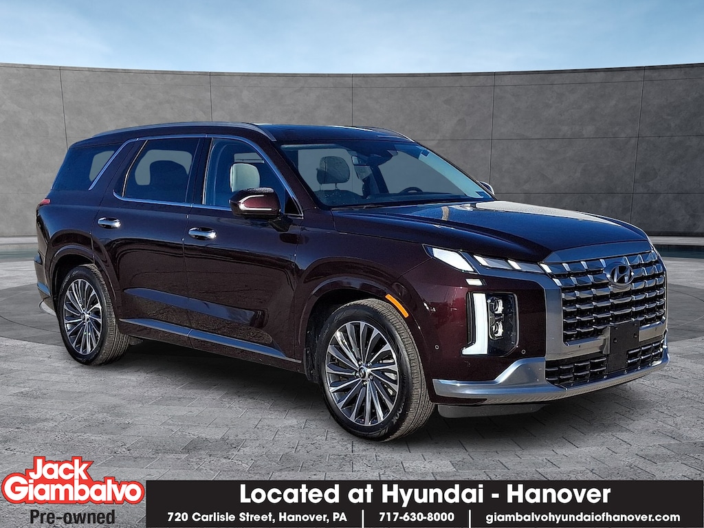 2024 Hyundai Palisade Calligraphy 172 point inspected Fully detailed Fresh oil change New Feature One Owner Purchased and Serviced Here GPS Navigation Back Up Camera Bluetooth- Hands Free. Sierra Burgundy 8-Speed Automatic with SHIFTRONIC Odometer is 16154 miles below market average!Hyundai Certified Used Vehicles Details: * Vehicle History * 173+ Point Inspection * Includes 10-year/Unlimited Mileage Roadside Assistance with Rental Car and Trip Interruption Reimbursement; Please See Dealers for Specific Vehicle Eligibility Requirements. 10-Year/100000 Mile Hybrid/EV Battery Warranty. 3-Months SiriusXM Trial Subscription. Complimentary 1 Year (Connected Care & Remote Pkgs). * Powertrain Limited Warranty: 120 Month/100000 Mile (whichever comes first) from original in-service date * Limited Warranty: 60 Month/60000 Mile (whichever comes first) from original in-service date * Warranty Deductible: $50 * Roadside AssistanceGiambalvo Hyundai of Hanover treats the needs of each individual customer with paramount concern. We know that you have high expectations and as a car dealer we enjoy the challenge of meeting and exceeding those standards each and every time. Allow us to demonstrate our commitment to excellence!