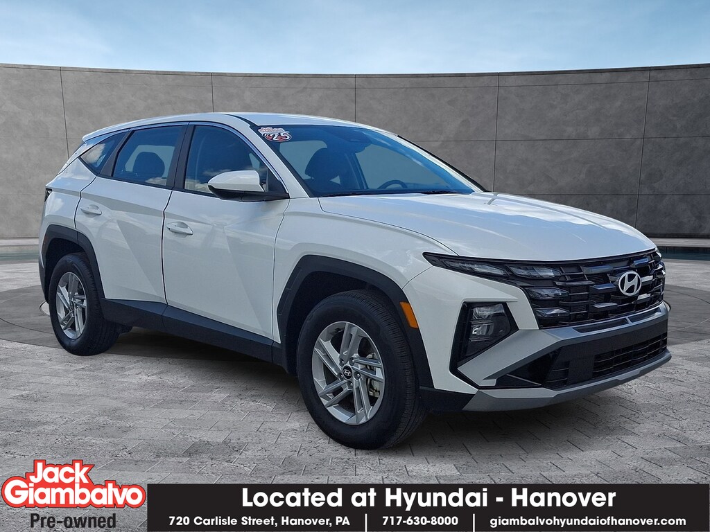 Discover the perfect blend of style, performance, and reliability with the 2025 Hyundai Tucson SE AWD. Dressed in a stunning white pearl exterior, this vehicle is sure to turn heads wherever you go. The sleek black interior offers a sophisticated yet comfortable atmosphere for all passengers. Equipped with a robust Smartstream 2.5L I-4 engine, the Tucson delivers an impressive 187 horsepower, ensuring a dynamic driving experience whether you're commuting through the city or exploring rugged terrain. Featuring advanced DOHC and CVVT variable valve control technology, this engine is designed for efficiency and performance, using regular unleaded fuel for added convenience. This certified pre-owned Tucson not only provides peace of mind with its thorough inspection and quality assurance but also comes with the drive-it-and-love-it promise. With its all-wheel-drive capability, you can confidently navigate all weather conditions. Enhance your lifestyle with the 2025 Hyundai Tucson SE AWD-where innovation meets practicality. Don't miss your chance to own a vehicle that embodies modern design and dependable performance. Visit us today to experience it for yourself!
