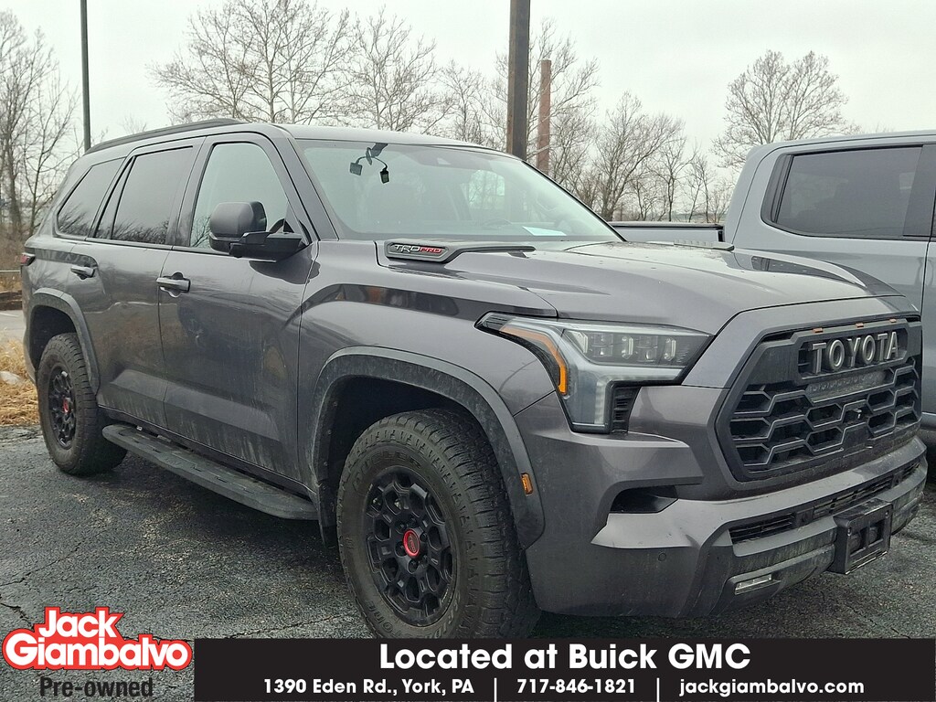 Red 2023 Toyota Sequoia TRD Pro 4WD 10-Speed Automatic V6 Hybrid V6 Hybrid 10-Speed Automatic 4WD ABS brakes Active Cruise Control Alloy wheels Compass Electronic Stability Control Front dual zone A/C Heated & Ventilated Front Seats Heated door mirrors Heated front seats Illuminated entry Low tire pressure warning Navigation System Power moonroof Remote keyless entry Traction control.Recent Arrival!With a wide array of different used and certified pre-owned vehicles to choose from Jack Giambalvo is the best York used car dealer in the area. For years we have been a favorite Harrisburg Lancaster and Hanover PA GMC & Buick used car source; so stop by or contact us today and experience the Jack Giambalvo Buick GMC difference.Your York GMC and Buick dealership is just minutes from Lancaster Shrewsbury New Freedom and Baltimore!